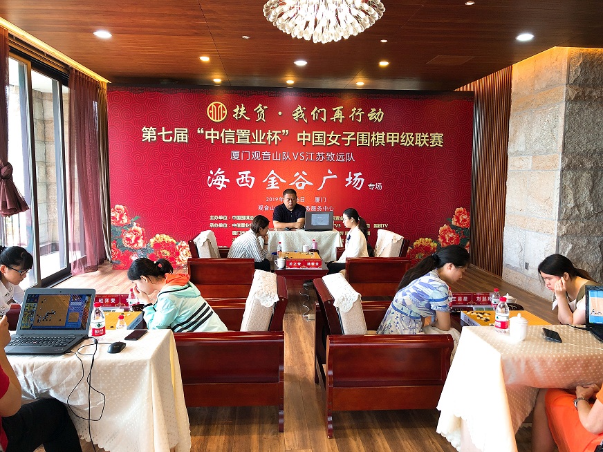 都說魚離不開水,魚兒上了陸,結(jié)果一望便知。這不,上周末,美麗鷺島就又上演了一場魚兒登陸的好戲。5月26日,第7屆中信置業(yè)杯中國女子圍棋甲級聯(lián)賽第3輪(廈門觀音山隊主場 VS 江蘇致遠(yuǎn)隊)“海西金谷廣場”專場在位于廈門觀音山海岸的觀音山總部企業(yè)商務(wù)服務(wù)中心戰(zhàn)罷。廈門觀音山隊家門口以2-1鎖定勝局,成功挑落女子圍甲六冠王——衛(wèi)冕冠軍江蘇隊。