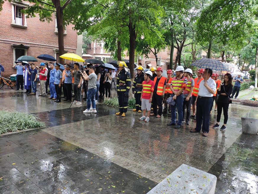 天空下著暴雨,鼓浪嶼福州路22號(hào)房屋出現(xiàn)重大險(xiǎn)情,現(xiàn)場(chǎng)煙霧彌漫,鼓浪嶼房屋安全應(yīng)急搶險(xiǎn)聯(lián)合演練正式拉開(kāi)序幕。演練現(xiàn)場(chǎng)模擬防御暴雨洪水二級(jí)應(yīng)急響應(yīng)下鼓浪嶼轄區(qū)待拆空置房屋內(nèi)社會(huì)閑散人員因生活用火不慎引起的火災(zāi),造成人員受傷和房屋受損,危及公共安全的場(chǎng)景。資產(chǎn)公司負(fù)責(zé)現(xiàn)場(chǎng)疏散對(duì)象和受困傷員的扮演,以及協(xié)助醫(yī)療人員包扎、運(yùn)送傷員等后勤保障工作。隨著濃煙開(kāi)始彌漫,現(xiàn)場(chǎng)街道火警報(bào)案,消防中隊(duì)人員出動(dòng),迅速疏散群眾;受困人員也在消防官兵的幫助下用濕毛巾捂住口鼻從火災(zāi)二層房屋有條不紊地撤離;受傷人員被120救護(hù)車(chē)運(yùn)送至醫(yī)院搶救;供電所斷電,華潤(rùn)燃?xì)夤咎幹萌細(xì)?。房屋安全?zhuān)家趕赴現(xiàn)場(chǎng),經(jīng)初步鑒定,該處房屋多處鋼筋混凝土框架柱、梁受損,致使房屋部分承重墻體出現(xiàn)裂縫、砼預(yù)制樓板出現(xiàn)移位開(kāi)裂。為避免房屋發(fā)生次生災(zāi)害,造成人民生命及財(cái)產(chǎn)損失,組織廈門(mén)房屋修建工程公司的鼓浪嶼搶險(xiǎn)隊(duì)加固建筑防止倒塌,按照房屋安全應(yīng)急搶險(xiǎn)預(yù)案,各小組有序開(kāi)展聯(lián)合救援。經(jīng)過(guò)1個(gè)小時(shí)緊急處置,險(xiǎn)情得以有效控制,最終火情被撲滅,人員全部疏散,傷員得到救治,建筑加固到位。最后,演練總指揮鼓浪嶼管委會(huì)副主任梁怡新對(duì)整場(chǎng)演練的點(diǎn)評(píng)和總結(jié),聯(lián)合搶險(xiǎn)演練圓滿完成。