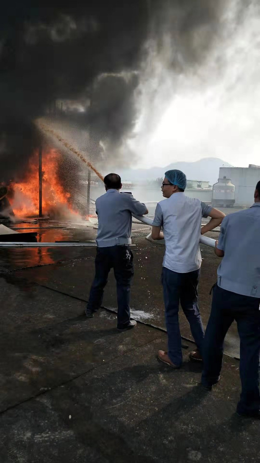 7月16日下午15:30許,巡邏人員發(fā)現8號廠房廈門科思達衛(wèi)生制品有限公司樓頂冒起了濃煙。火災無情,警情就是命令。同安工業(yè)集中區(qū)思明園服務中心立即啟動應急機制,調集消防小分隊奔向火災事發(fā)地。經過現場火情偵察,該企業(yè)在樓頂使用“電焊機”焊接通風設備,焊渣飛濺引起旁邊的煙囪燃燒,煙囪內壁的油渣和殘留物延伸到每層車間,情況十分緊急。服務中心應急消防小分隊組織員工疏散、切斷電源、架設水槍……經過近10多分鐘撲救,火災成功撲滅。
