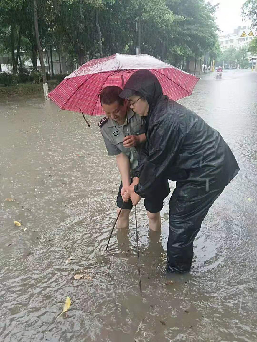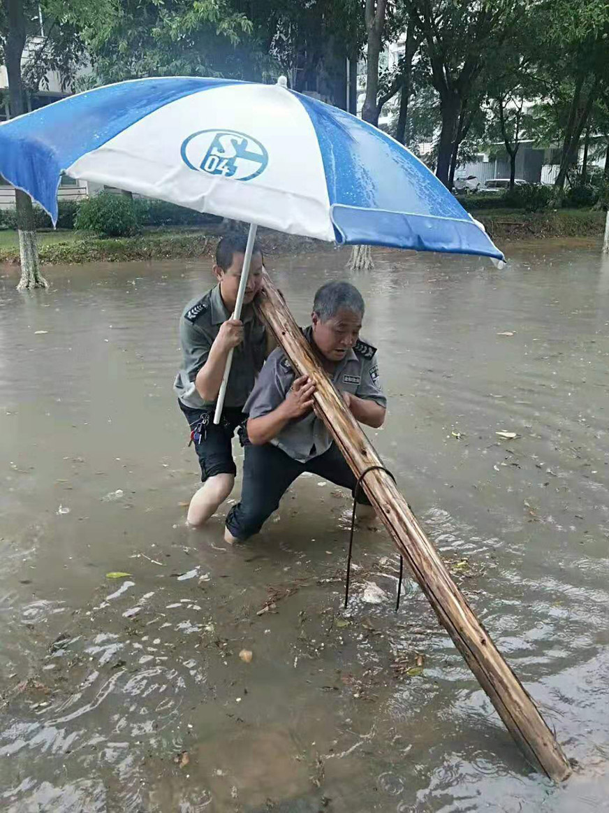 情況緊急,廈門市全和物業(yè)管理有限公司同安工業(yè)集中區(qū)思明園管理中心立即出動突發(fā)事件應(yīng)急小分隊(duì),任務(wù)只有一件,就是清理排水口,恢復(fù)道路通行秩序。頂著瓢潑大雨,他們用雙手扒、用鐵鍬鏟、用木棍撬……掀開數(shù)十個沉重的排水井蓋。積水很快就順溝而下。為了車輛及行人安全,他們在掀開井蓋,排水井前沿指揮交通?;疑闹品缫褲裢福樕弦逊植磺迨怯晁€是汗水。通行無阻的行人和車輛看著這一切,不知心中是否感受到物業(yè)人滿滿的暖意。