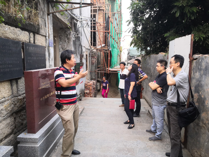 吳永奇老師以邊走邊學(xué)的教學(xué)模式,帶領(lǐng)參學(xué)人員從鼓浪嶼鋼琴碼頭出發(fā),一路參觀了福州路127號(hào)中共福建省委軍委機(jī)關(guān)舊址,三明路17號(hào)共青團(tuán)福建省委舊址,內(nèi)厝澳曾家園——中共福建省第二次代表大會(huì)舊址,內(nèi)厝澳197號(hào)城工部舊址,泉州路54號(hào)神州醫(yī)院舊址,虎巷8號(hào)福建省委機(jī)關(guān)舊址,招明文具店舊址和福建路54號(hào)國(guó)共合作秘密聯(lián)絡(luò)站舊址等八個(gè)紅色建筑及遺址。