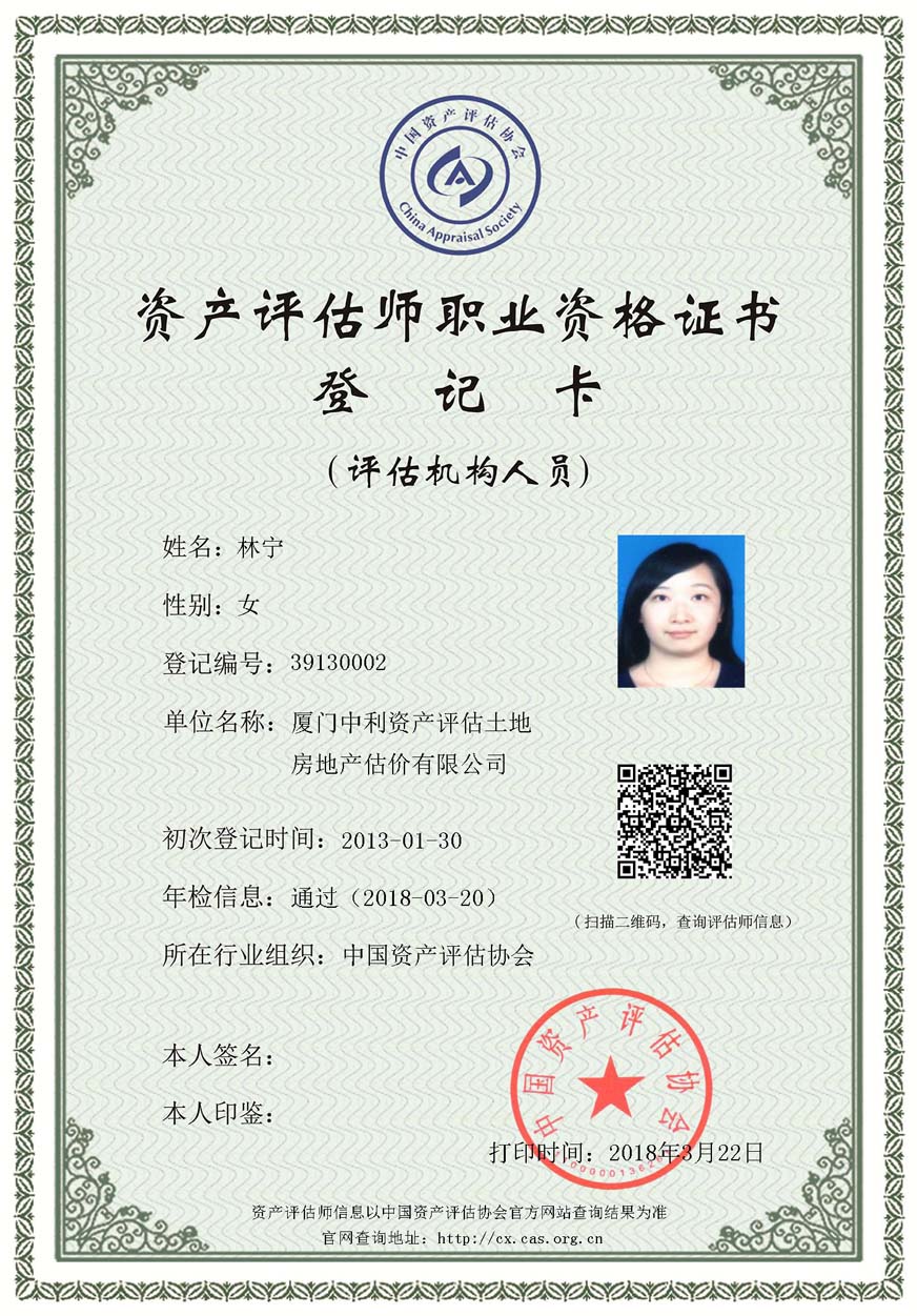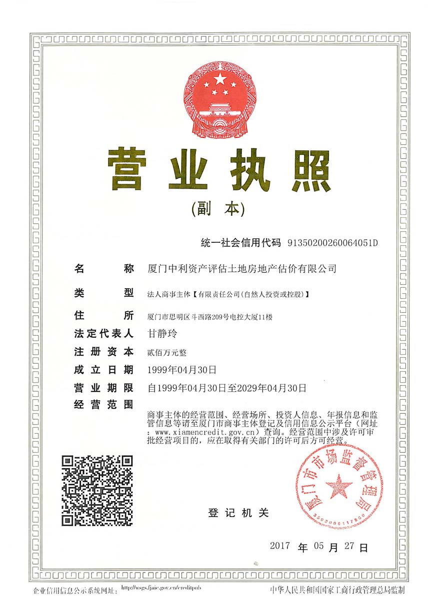 3. 廈門中利資產評估土地房地產估價有限公司營業(yè)執(zhí)照、評估資格證書復印件及注冊評估師林寧、鄭婷婷資質證書復印件;
