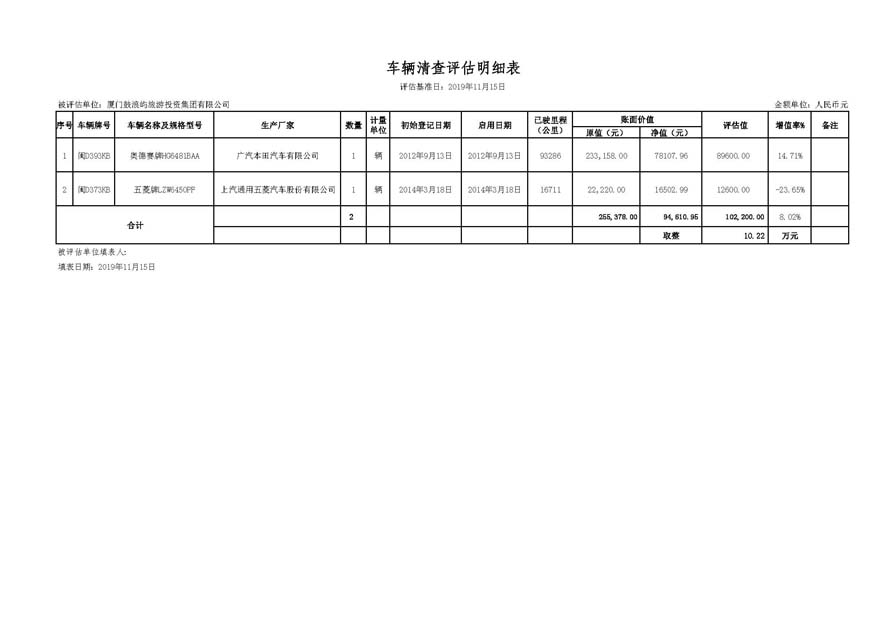 4.《鼓浪嶼旅游集團車輛清查評估明細表》。