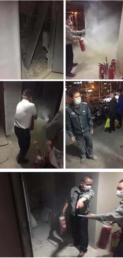 平常不忘消防應(yīng)急演練,緊要關(guān)頭派上場(chǎng)。2020年4月17日18點(diǎn)45分觀音山公寓消防系統(tǒng)警報(bào)響起。監(jiān)控室值班員發(fā)現(xiàn)塔埔路100號(hào)19樓有濃煙,馬上通知當(dāng)班維序員上樓查看,確認(rèn)是18樓弱電井內(nèi)起火。服務(wù)處即刻啟動(dòng)消防應(yīng)急預(yù)案,撥打119火災(zāi)報(bào)警電話,向上級(jí)匯報(bào)情況?;鹎榫褪敲睿飿I(yè)維序員即刻集結(jié)到現(xiàn)場(chǎng),首先切斷樓層電源,引導(dǎo)樓層居民疏散,現(xiàn)場(chǎng)在確認(rèn)火勢(shì)不大的情況下,維序員運(yùn)用日常消防演練的知識(shí),采用干粉滅火器對(duì)著火點(diǎn)滅火;18:53分明火被撲滅。由于發(fā)現(xiàn)及時(shí)、撲救及時(shí),著火范圍沒(méi)有擴(kuò)散,沒(méi)有人員傷亡。