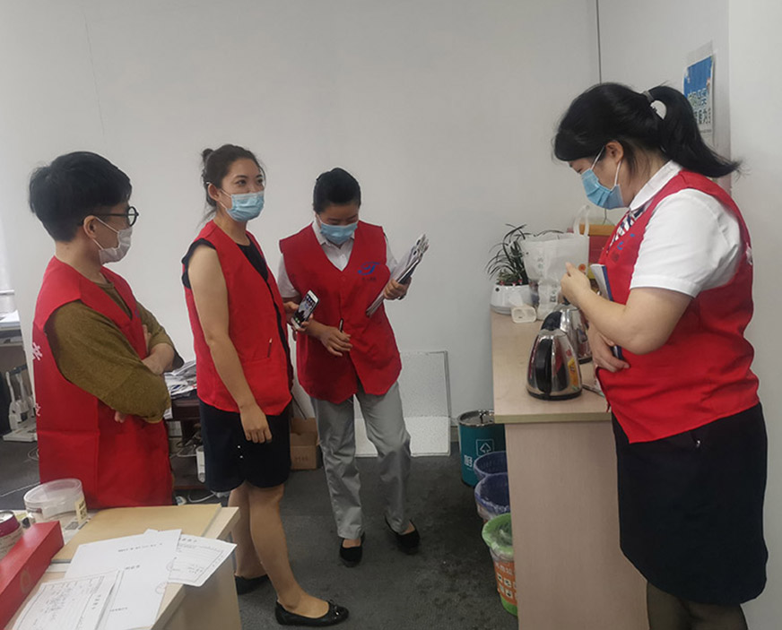 垃圾分類督導(dǎo)小組實地查看了辦公區(qū)域垃圾分類設(shè)施設(shè)備的配備情況,檢查垃圾分類的投放情況,指出了垃圾分類工作中存在的問題。