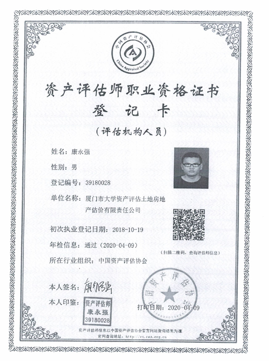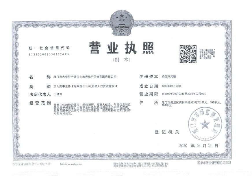 2. 廈門市大學資產(chǎn)評估土地房地產(chǎn)估價有限責任公司相關資質(zhì)證書