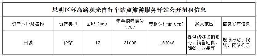 思明區(qū)環(huán)島路觀光自行車站點(diǎn)旅游服務(wù)驛站公開(kāi)招租公告