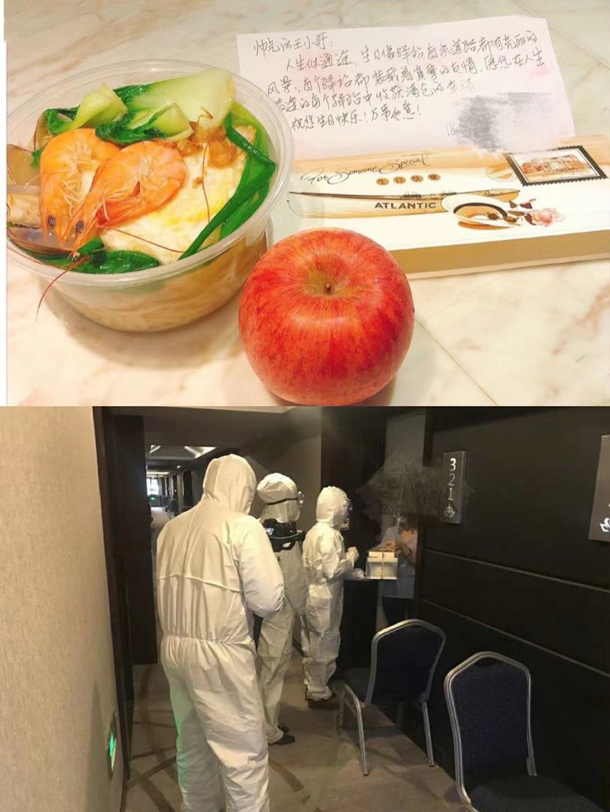 今年春節(jié)期間,因疫情住在隔離酒店的隔離人員不能和家人、朋友團聚,但酒店專班也為每一個在住隔離人員都準(zhǔn)備了年貨、應(yīng)景的年夜飯、在酒店門口等貼上春聯(lián)、掛上紅燈籠等,讓隔離人員也都能感受到年味兒,過上一個別樣的新年。