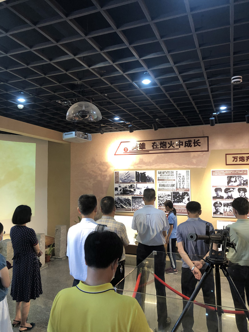 參觀過(guò)程中,通過(guò)何厝小學(xué)的師生的導(dǎo)學(xué)和現(xiàn)場(chǎng)環(huán)境氛圍的渲染,黨員同志清晰的了解到在50年代,盤(pán)踞在臺(tái)灣金門(mén)島的國(guó)民黨軍隊(duì)經(jīng)常對(duì)大陸進(jìn)行軍事挑釁,福建沿海許多和平的村莊被炸毀,許多村民被炸死。生活在福建前線的八個(gè)小學(xué)生在學(xué)校遷到后方之際主動(dòng)留了下來(lái),冒著槍林彈雨,成了“縫縫連連、洗洗涮涮、站崗放哨、擦擦炮彈、修筑工事、挑水送飯、送茶點(diǎn)煙、安電話線”的“什錦戰(zhàn)士”,有力地支援了前線的抗敵斗爭(zhēng)。因此,解放軍送給了他們一個(gè)光榮稱(chēng)號(hào)——英雄小八路。
