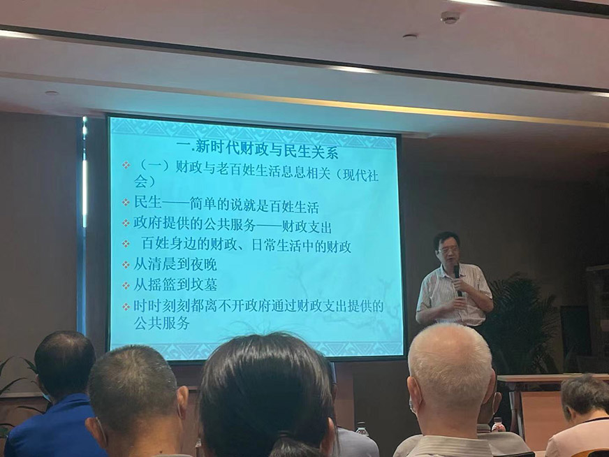 宣誓結(jié)束,來自廈門大學(xué)經(jīng)濟學(xué)院財政系教授劉曄為黨員們講授黨課《現(xiàn)代財政制度與新時代民生福祉》。劉教授的報告以習(xí)近平總書記對現(xiàn)代財政制度、民生福祉的重要論述為主要依據(jù),結(jié)合黨的十九大報告基本精神,通過“財政與民生”這一視角,說明財政是民生福祉的保障和主要依托,是國家治理的基礎(chǔ)和重要支柱。以民生福祉為中心,補足“民生短板”,加快建立現(xiàn)代財政制度,是我黨百年財政思想與實踐的重要課題。黨員干部只有始終將為人民群眾謀福利作為奮斗目標,把改善民生福祉落到實處,讓群眾共享新時代的發(fā)展成果,提高人民幸福感、獲得感,國家就能日益繁榮昌盛。劉教授的報告使大家對我們黨“發(fā)展為了人民、發(fā)展依靠人民,發(fā)展成果由人民共享”即“以人民為中心”的發(fā)展思想有了更加深刻的理解和認識。