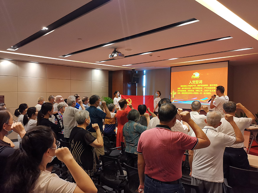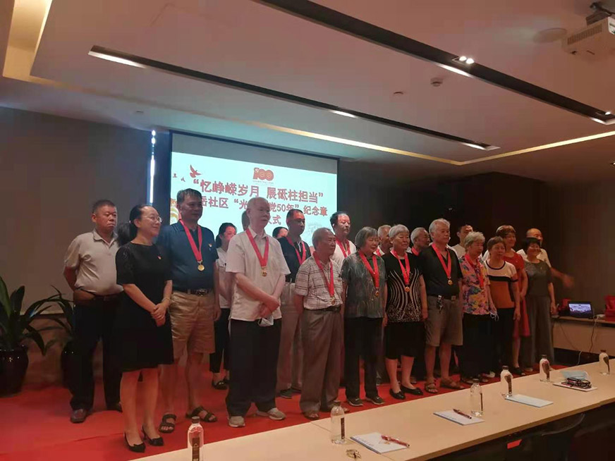 黨課結(jié)束,仙岳社區(qū)各黨支部書記和開元國投有關(guān)領(lǐng)導(dǎo)上臺,為仙岳社區(qū)28名黨齡達到50年以上的老黨員頒發(fā)“光榮在黨50年”紀念章。在“七一”建黨百年紀念日即將到來之際,黨中央決定向黨齡達到50年以上的老黨員頒發(fā)“光榮在黨50年”紀念章,表達了對老黨員的敬意,進一步增強了老黨員的榮譽感、歸屬感、使命感。老黨員們心情激動,都表示要繼續(xù)保持共產(chǎn)黨員本色,發(fā)揚全心全意為人民服務(wù)的精神,為廈門建設(shè)發(fā)揮余熱。在場的青年黨員也紛紛表示,要堅定永遠跟黨走的信念,傳承好老一輩的優(yōu)良傳統(tǒng)和作風(fēng),為黨旗增輝,不負青春,不負理想。