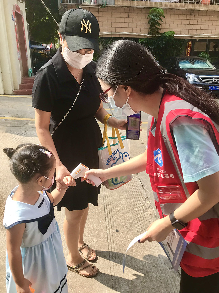 上午8時,我們來到蓮云街道,手持測溫槍、檢查健康碼,發(fā)放和普及防疫宣傳資料。
