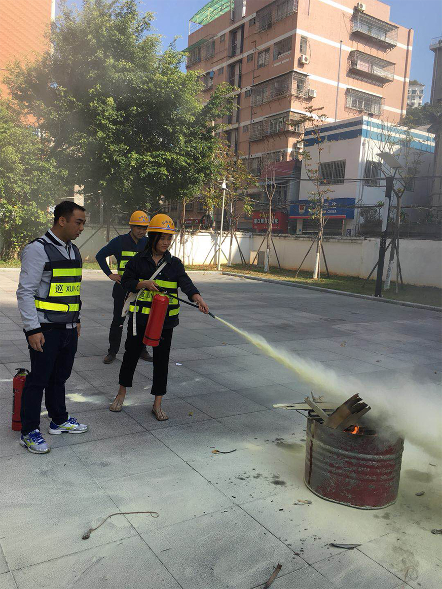 演練開始,首先是對干粉滅火器的操作使用,隊員們采取兩兩分組,搖瓶,除封,拔銷,滅火,沉著冷靜,有條不紊,基本做到一次性完成滅火任務,這對于平時很少實戰(zhàn)經(jīng)驗的員工來說實屬難得。