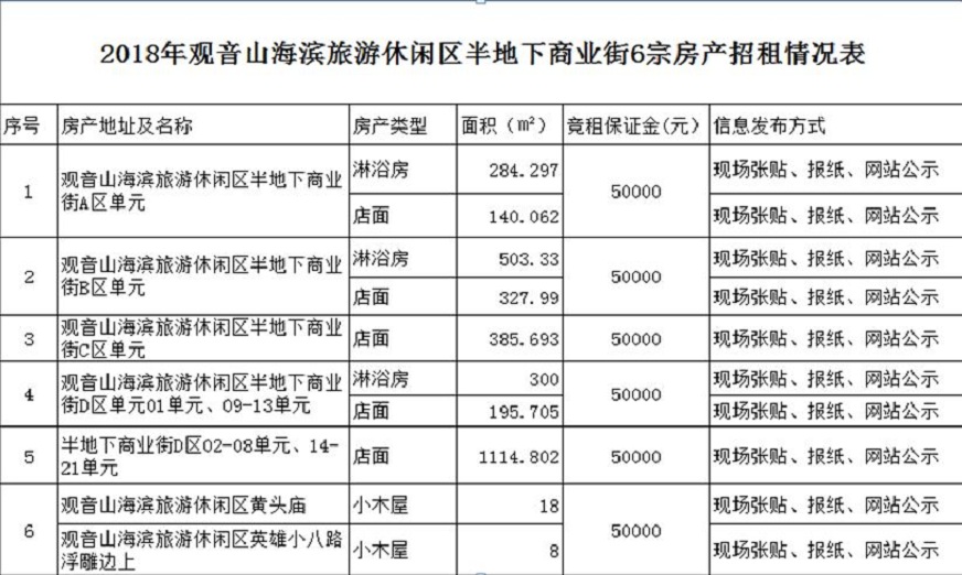 思明區(qū)觀音山半地下商業(yè)街6宗房產(chǎn)公開(kāi)招租信息