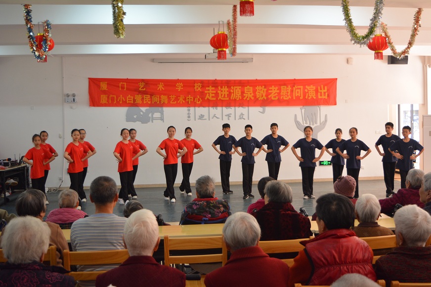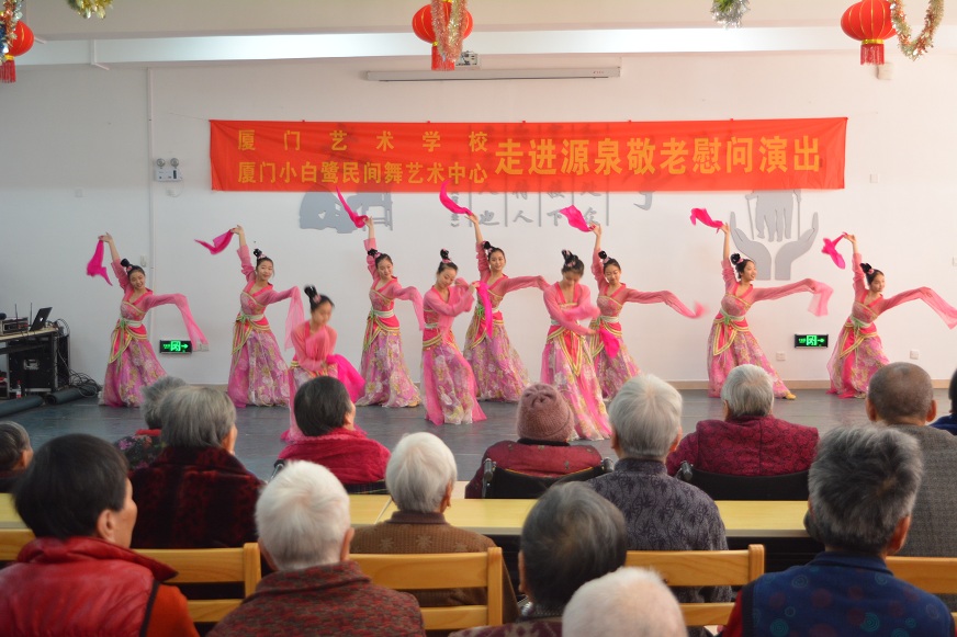 陽(yáng)春三月,萬(wàn)物復(fù)蘇。在這個(gè)美好的季節(jié)里,源泉山莊老年公寓飛來(lái)一只可愛的“小白鷺”——最受群眾喜愛的廈門小白鷺民間舞團(tuán)。這已是廈門小白鷺民間舞藝術(shù)中心和廈門藝術(shù)學(xué)校第四個(gè)年頭來(lái)到源泉山莊老年公寓,為住在老年公寓里的長(zhǎng)者們舉辦慰問演出,在今年春天又一次給長(zhǎng)者們帶來(lái)了一場(chǎng)美好的感受和豐富的文化盛宴。
